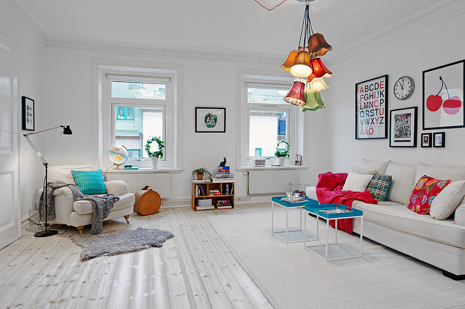 Read MoreRed, turquoise, almond green, yellow… Colours ! That’s what comes in mind when you see this 70 square meters apartment in Vasastan, a disctrict of Göteborg in Sweden. The numerous art paintings, the cushions or the lamps, every element of this apartment brings its touch of colour and pops again all the white ! Love the sweet pink and purple balcony !